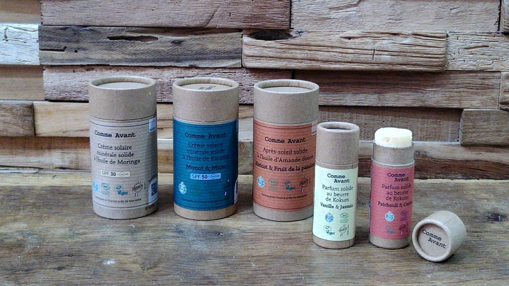 Ils n’ajoutent pas de conservateur ni de colorant dans leurs cosmétiques solides Bio et se limitent à l’essentiel pour être efficace. Tous les produits sont certifiés Cosmos Bio, Vegan et non testés sur les animaux conformément aux lois européennes. Comme Avant a élargi son savoir-faire aux produits ménagers et plus récemment aux vêtements durables.