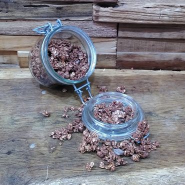 Flocons d’avoine complets* 43%, sucre de canne*, flocons de blé complets*, billettes de céréales* (riz*, blé complet*, avoine complète* 0,5%, sucre de canne*, sel), huile de tournesol*, noix de coco séchée*, farine de blé*, sirop de riz*, morceaux de chocolat noir* 3% (masse de cacao*, sucre de canne*, beurre de cacao*), morceaux de chocolat au lait* 3% (sucre de canne*, beurre de cacao*, poudre de lait entier*, masse de cacao*), poudre de cacao dégraissé* 2,5%, chocolat au lait* 1,2% (sucre de canne*, beurre de cacao*, poudre de lait entier*, masse de Cacao*).