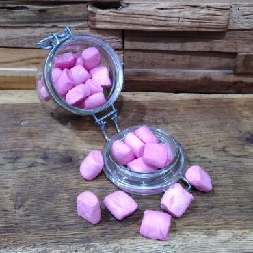 sucre de canne roux*°, sirop de maïs*, eau, sucre de betterave* 16%, sirop de glucose*, sucre glace* (sucre de canne blond*°, fécule de pomme de terre*), gélatine de porc*, jus de citron concentré*, arôme naturel de fraise*, lait écrémé en poudre*, jus de betterave concentré*, gomme d’acacia*.